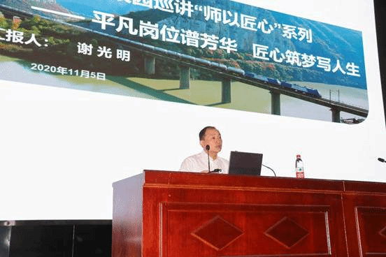 谢光明以“平凡岗位谱芳华,匠心筑梦写人生”为题,用自己的人生经历告诉同学们,“做一件事情就要做到完美,做到极致”,要成为真正的“大国工匠”,就要爱岗敬业、精益求精、执着专注、不断创新;要勇于实践,知道不是力量,做到才是力量;要有团队精神,一个人的力量是微不足道的,团队的力量才是战胜困难的法宝;要树立自己的理想,现在,青春是用来奋斗的,将来,青春是用来回忆的,用高远志向收获自己的成果。