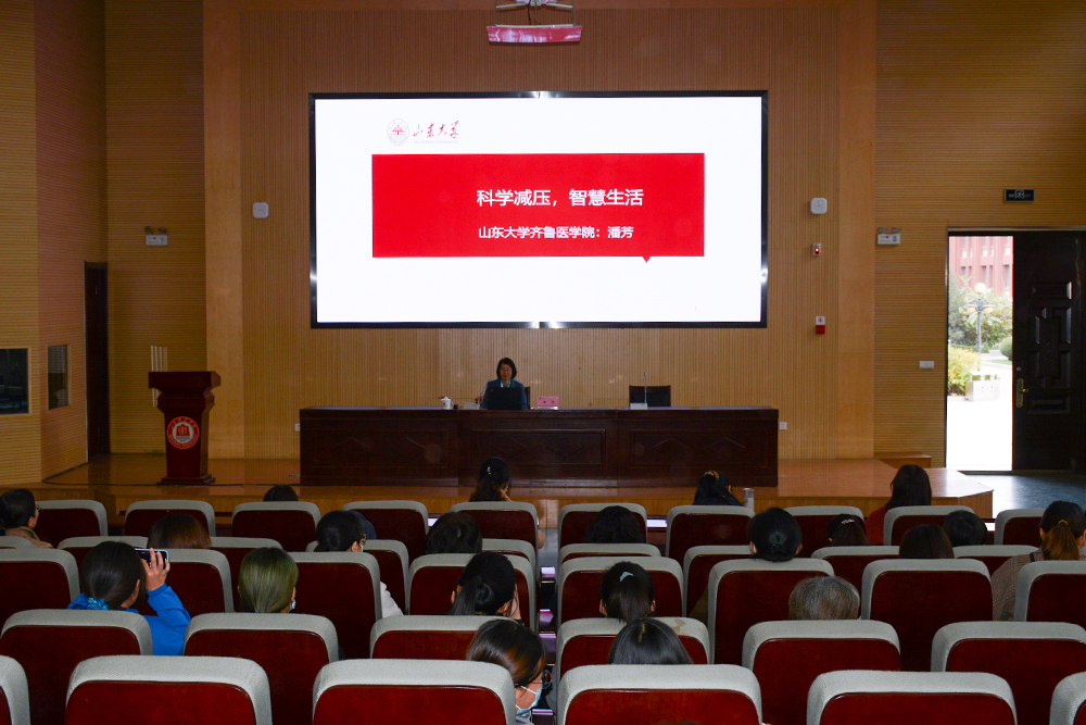 为加强对女教职工的人文关怀和心理疏导,积极帮助女教职工舒缓心理压力,提升心理健康水平,11月5日,我校邀请山东大学齐鲁医学院潘芳教授在东报告厅为女教职工举行了一场题为“科学减压 智慧生活”的心理健康讲座。