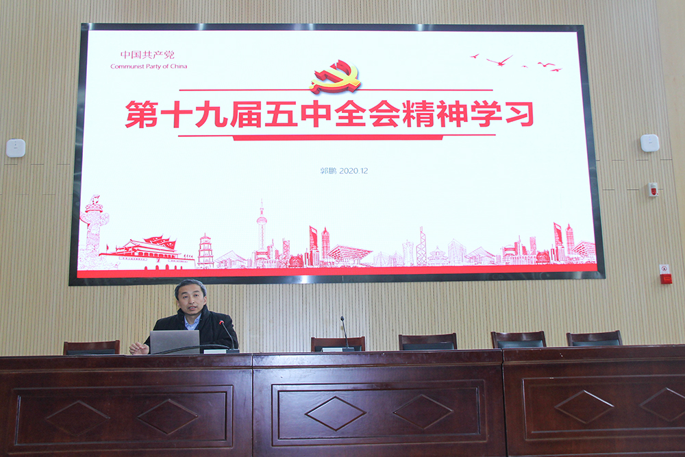 郭鹏首先围绕党的十九届五中全会精神和《中共中央关于制定国民经济和社会发展第十四个五年规划和二〇三五年远景目标的建议》,从总论、分论和结尾三大部分内容分开阐述。重点解读了职业教育的目标要求,从科技创新、产业发展、文化建设、社会建设等四个方面深入分析。要求各职能处室和二级学院以国家方向为引领指导自身业务的开展。最后,他要求职业教育工作者要以党员标准严格要求自己,积极宣传贯彻党的十九届五中全会精神;要坚持立德树人,为党育人、为国育才,为实现 “十四五”规划和二〇三五年远景目标贡献力量。