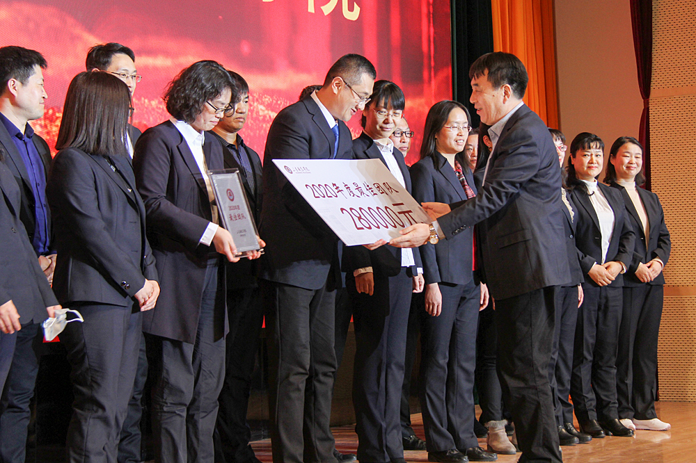 副院长祝瑞花向土木工程学院范海燕颁发了2020年度最佳贡献。