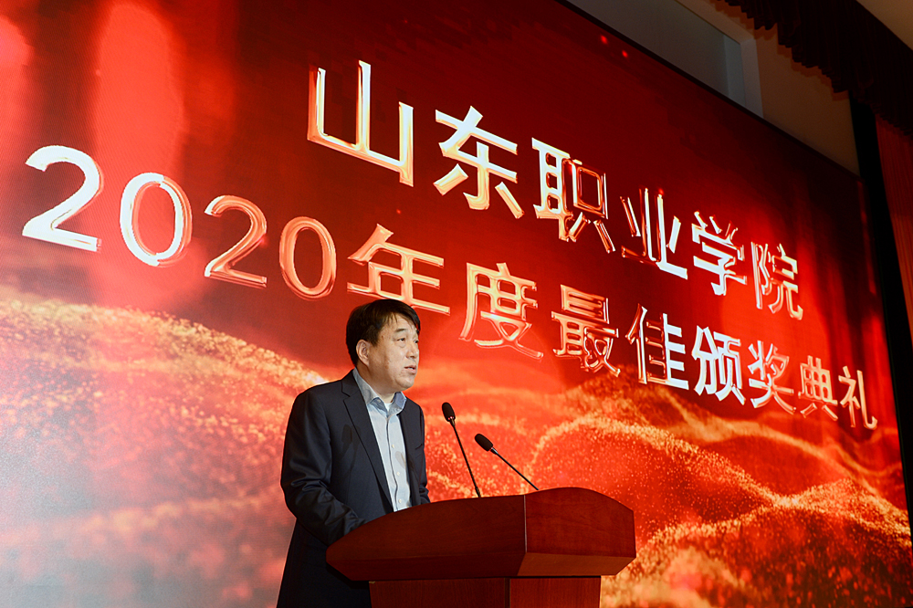 党委书记高磊代表学校党委向受表彰的单位和个人表示祝贺,他强调,他们的工作业绩当得起这一荣誉,值得我们每一个人尊敬和学习。高磊指出,刚刚闭幕的2020年,是极不平凡的一年。这一年,在以习近平同志为核心的党中央的坚强领导下,全国人民众志成城,疫情防控取得重大成果,全校师生团结一心,在省内高校率先复学,教学计划顺利完成。这一年,部省共建职业教育创新发展高地“全面起势”,学校启动转设升本工作,积极筹建山东职业技术大学。这一年,学校事业发展得到各级领导的关心支持,省委书记刘家义、教育部职成教司司长陈子季、教育厅邓云锋厅长先后来校调研指导。这一年,全面加强党的领导,党旗在学校改革发展的各个领域高高飘扬。这一年,“十三五”完美收官,学校事业发展取得长足进步。启动了完全学分制改革、“书院制”学生管理模式改革,重组了教学科研和管理机构,改善基本办学条件。