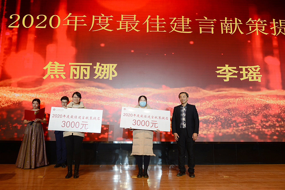 副院长郭鹏向智能制造学院教师焦丽娜、易安书院学生李瑶颁发了2020年度最佳建言献策提名。