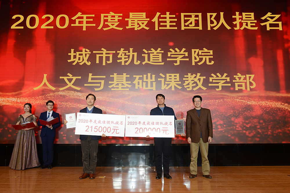 院长秦河向城市轨道学院、人文与基础课教学部颁发了2020年度最佳团队提名。