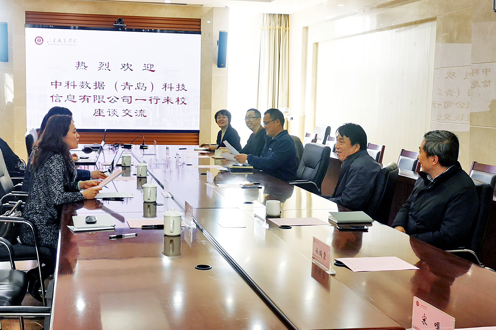 3月3日,中科数据(青岛)科技信息有限公司董事长李莉一行到访我校。党委书记高磊出席会见。