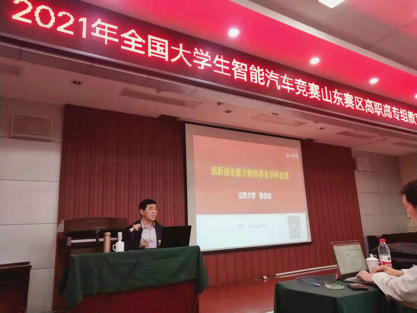 会上,我校创新创业教育中心副主任齐涛介绍了学校基本情况和创新创业工作成效。山东大学陈言俊教授和陈桂友教授分别做了《创新创业能力的培养及学科竞赛》《高职高专智能汽车竞赛的组织与开展》的专题报告。竞赛设备工程师就竞赛规则进行了解读,并对智能车软硬件进行了讲解及调试。