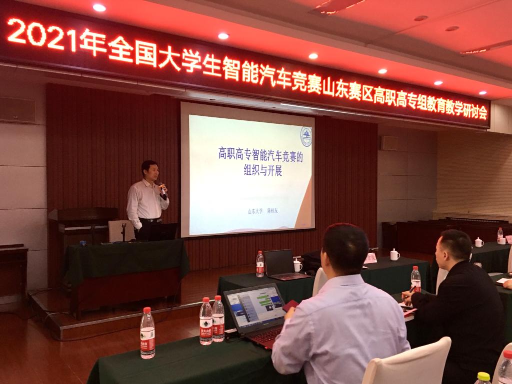 5月15日,2021年全国大学生智能汽车竞赛山东赛区高职高专组教育教学研讨会在我校解放路校区会议中心举行,来自省内20余所高校的30余名竞赛指导教师参加会议。