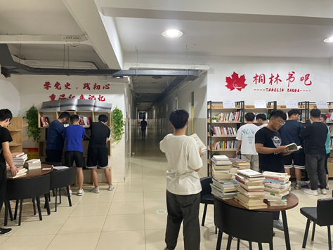 图书进书院,学生处处可读书。图书馆联合学生工作处、各书院共同打造“遍地书香”,让图书走进书院、走进宿舍。经过多次调研、协调后,图书馆挑选了近千册图书典藏入桐林书院,和桐林书院共同打造了“桐林书吧”。书院书吧的建设,不仅满足了书院读者的阅读需求,方便同学们充分利用碎片化时间进行阅读,而且丰富了同学们的课余文化生活,对于培养良好的阅读习惯具有重要作用。