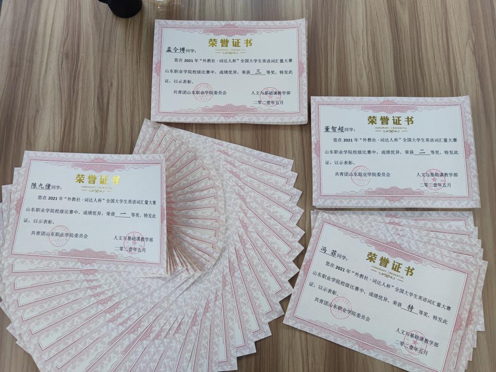 6月6日,在首届“外教社•词达人杯”全国大学生英语词汇能力大赛全国决赛中,我校学生喜获特等奖1名,一等奖1名,二等奖2名,三等奖5名。