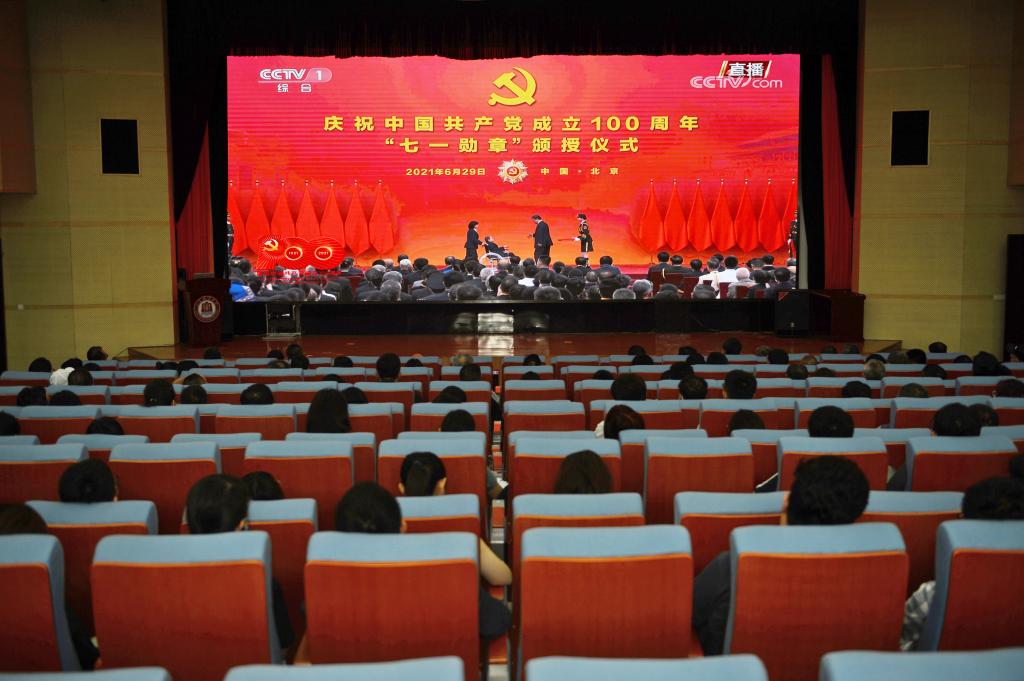 6月29日上午10时,“七一勋章”颁授仪式在北京人民大会堂隆重举行。中共中央总书记、国家主席、中央军委主席习近平向“七一勋章”获得者颁发奖章并发表重要讲话。学校党委组织全体党员在图书行政楼西报告厅观看颁授仪式的直播盛况。