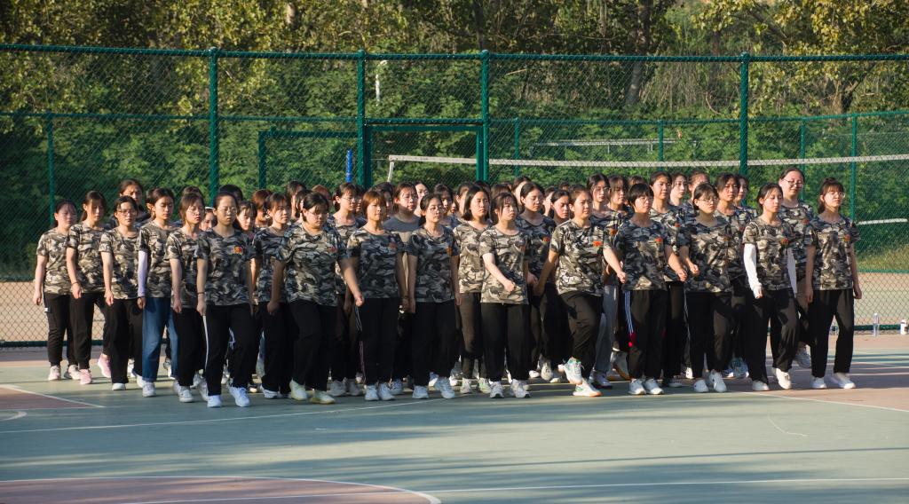 参训新生建编一个军训团,下设三个营,共计40个连,将在未来九天内接受共同条令教育、分队列队动作、战术、格斗基础、战场医疗救护、战备规定、紧急集合、行军拉练等一系列的训练及国防知识教育。