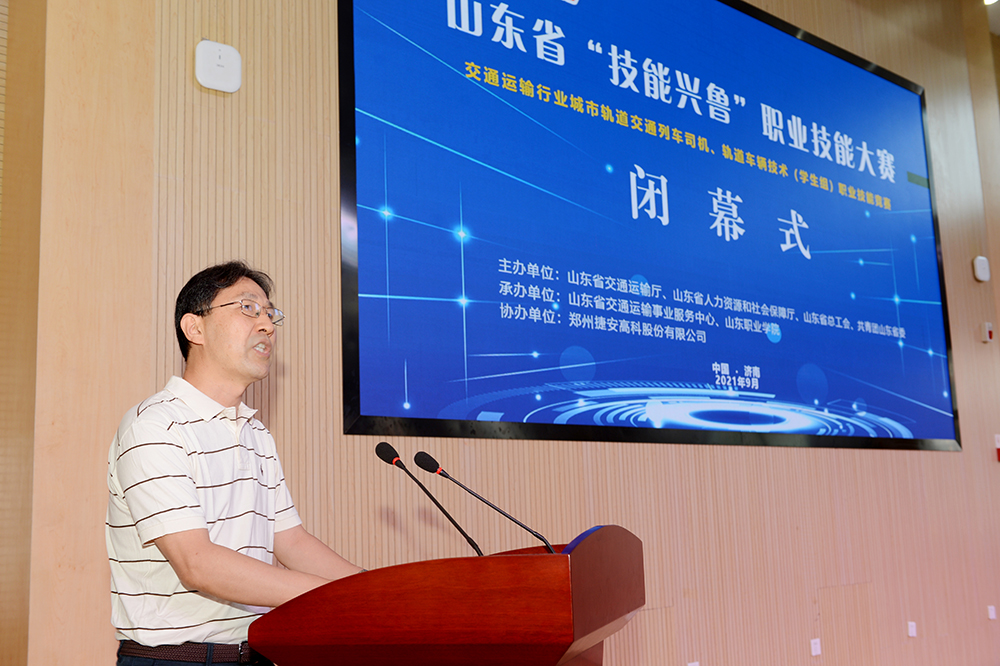 9月14日—16日,2021年山东省“技能兴鲁”交通运输行业城市轨道交通列车司机(学生组)、轨道车辆技术(学生组)职业技能竞赛在我校举行。山东省交通运输行业职业技能竞赛组委会副主任、省交通运输事业服务中心二级巡视员、党委副书记、纪委书记逄健敏,省交通运输行业职业技能竞赛组委会办公室副主任、省交通运输事业服务中心安全处处长鹿俊峰,院长秦河、副院长王绍军等出席。