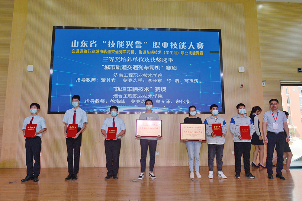 经过紧张激烈地角逐,最终我校获得城市轨道交通列车司机、轨道车辆技术赛项一等奖;济南市技师学院获得城市轨道交通列车司机二等奖;青岛市技师学院获得轨道车辆技术二等奖;济南工程职业技术学院获得城市轨道交通列车司机三等奖;烟台工程职业技术学院获得轨道车辆技术三等奖。我校齐长宝、王震老师荣誉“优秀指导教师”称号。