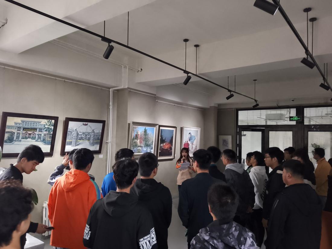 本次展览以坚定文化自信,熏陶人文素养,提升办学品味,涵养校园气质为宗旨。活动分为自由观览和集体参观,期间,有计划分批次组织了1500余名在校师生进行了集体参观,校广播站的五名同学组成讲解团,围绕作者简介、创作背景、构图着色等为师生们进行了讲解。