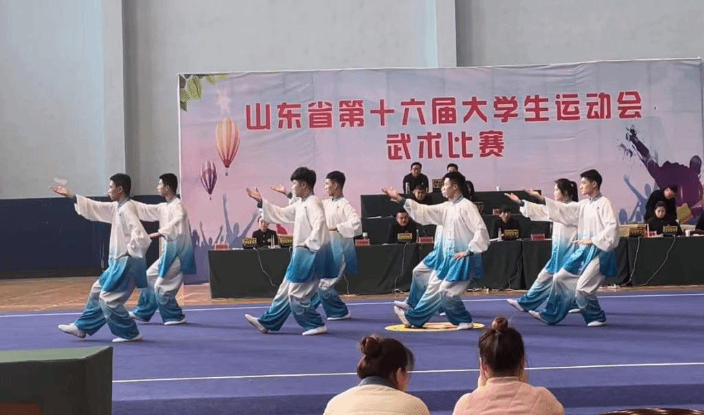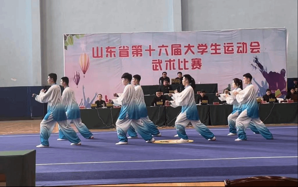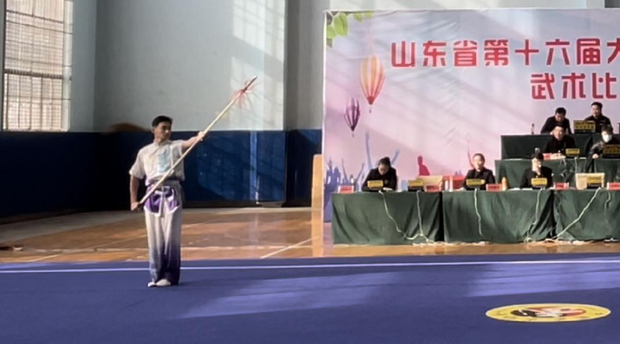 12月5日至9日,山东省第十六届大学生运动会武术比赛在曲阜师范大学举行,我校武术队参加了集体和男子枪术的比赛。