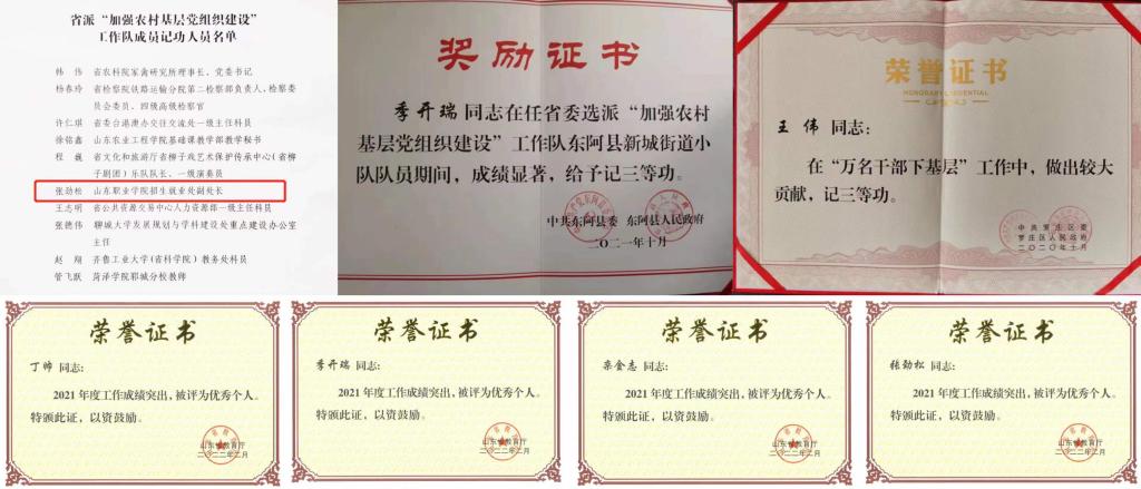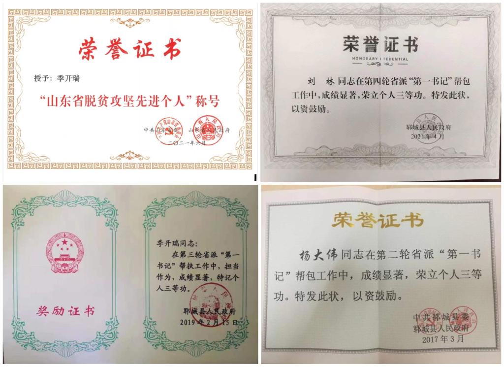 近年来,学校连续委派五轮共5名优秀党员干部到菏泽市郓城县前营村等地任村“第一书记”。省派第一书记派驻以来,不忘任职初心、牢记驻村使命,帮助帮扶村闯路子育产业、办实事惠民生、树新风促文明,坚持一手抓党建、一手抓振兴,为脱贫攻坚、乡村振兴作出了突出贡献。有1人获得“山东省脱贫攻坚先进个人”荣誉称号,2人获得学校脱贫攻坚嘉奖,3人获任职所在县三等功。