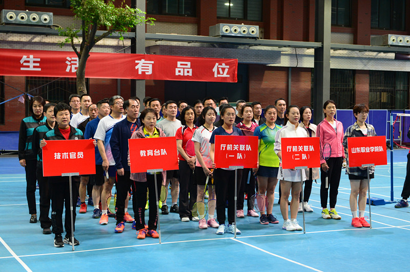 4月15日,我校在阳光大厅羽毛球馆举行了2023年羽毛球混合团体邀请赛,省教育厅(省委教育工委)机关、山东教育电视台和我校共三个单位四支代表队的70余人参加比赛。