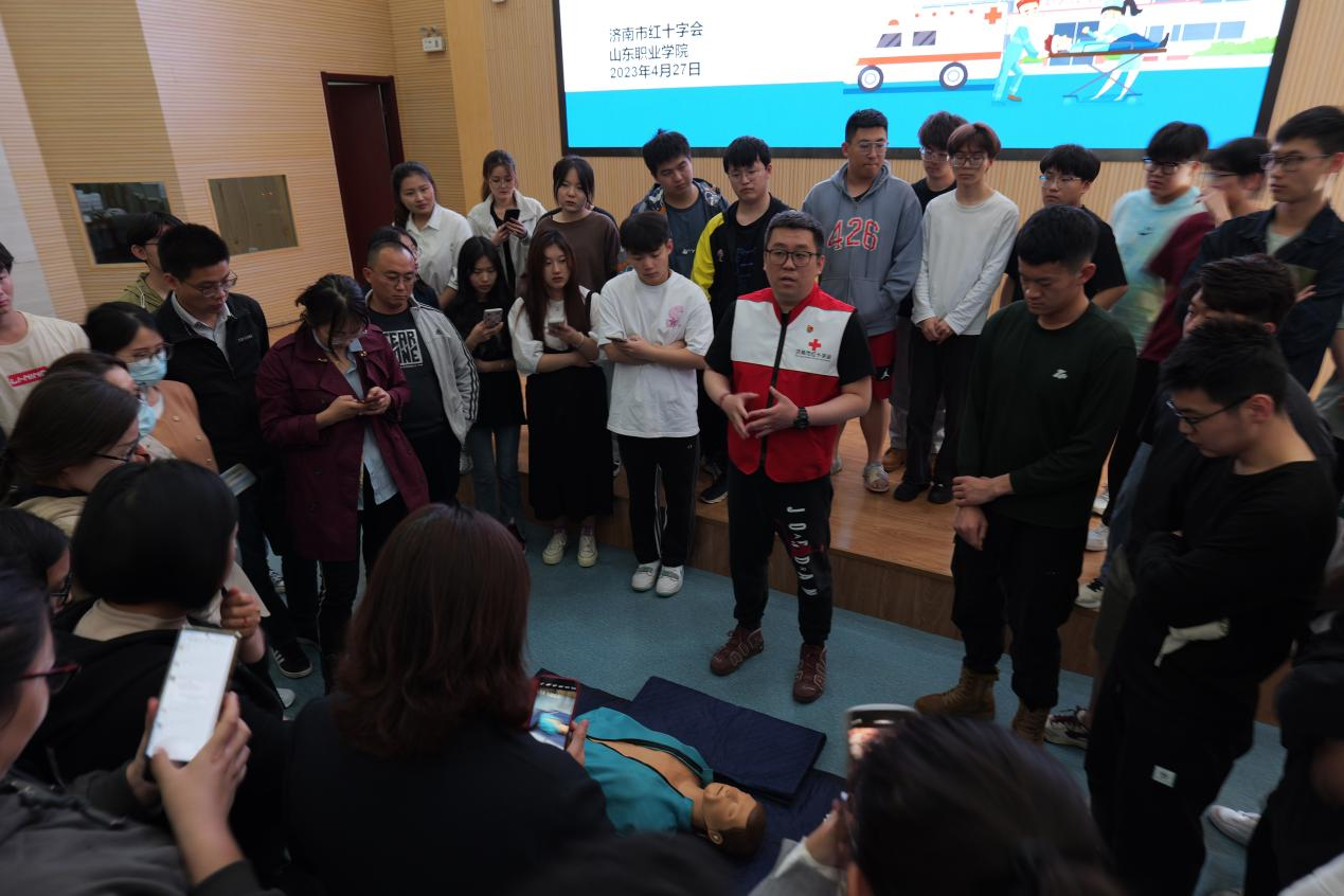 为进一步提高师生面对突发事件和意外伤害事故的应急救护能力,切实做好校园安全防范工作。4月27日,由校团委、学生工作处主办,南山书院承办的红十字救护员培训活动在图书行政楼东报告厅成功举办。活动邀请济南市红十字会培训讲师徐琳、潘晓龙担任主讲,12名辅导员及学校应急救护协会和各书院分队的40余名学生参加。