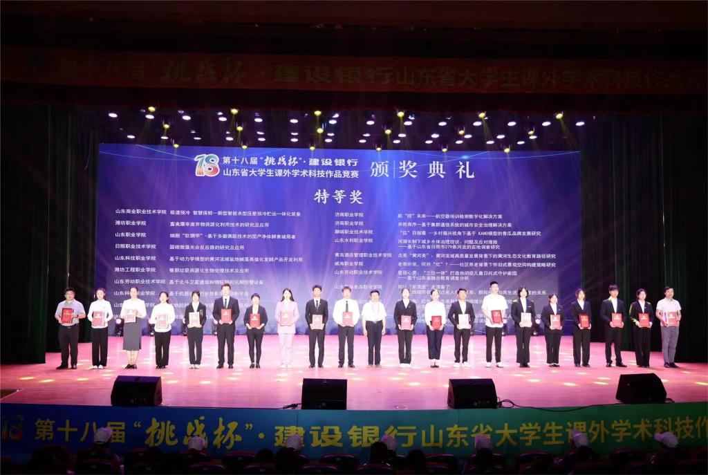 5月18日至22日,由团省委、省教育厅、省科技厅、省科协、省社科院、省学联主办,齐鲁工业大学(山东省科学院)承办的普通高校组、潍坊职业学院承办的职业院校组,第十八届“挑战杯”山东省大学生课外学术科技作品竞赛闭幕活动暨颁奖典礼在齐鲁工业大学(山东省科学院)长清校区艺体中心礼堂举行。我校荣获优秀组织奖,“细胞‘软猬甲’——基于多菌偶联技术的国产净体酵素破局者”项目获特等奖。