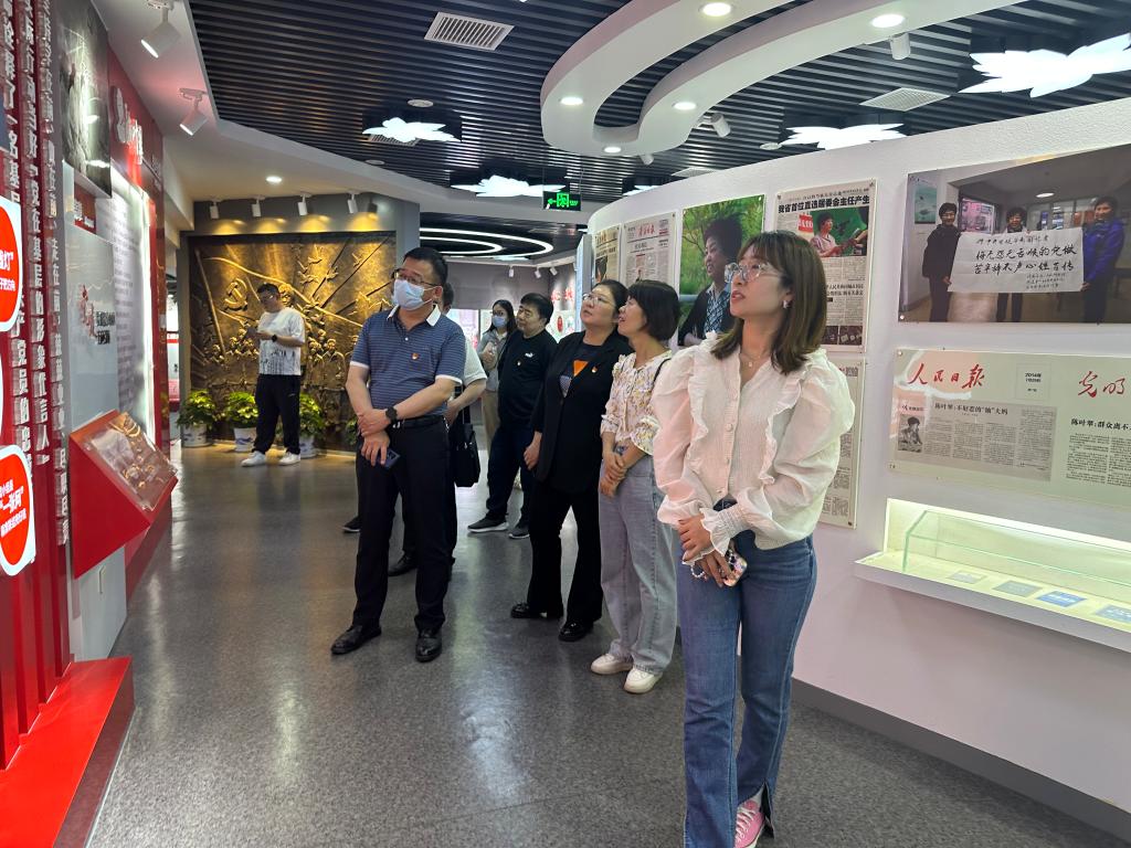 为全面落实党的二十大精神,推动学习贯彻习近平新时代中国特色社会主义思想主题教育走深走实,5月31日下午,宣传部党支部、图书馆党支部一行赴历下区甸柳新村街道办事处参观学习,将“山栀花开”红色专列驶入甸柳新村。甸柳新村街道党工委副书记牟然热情接待。