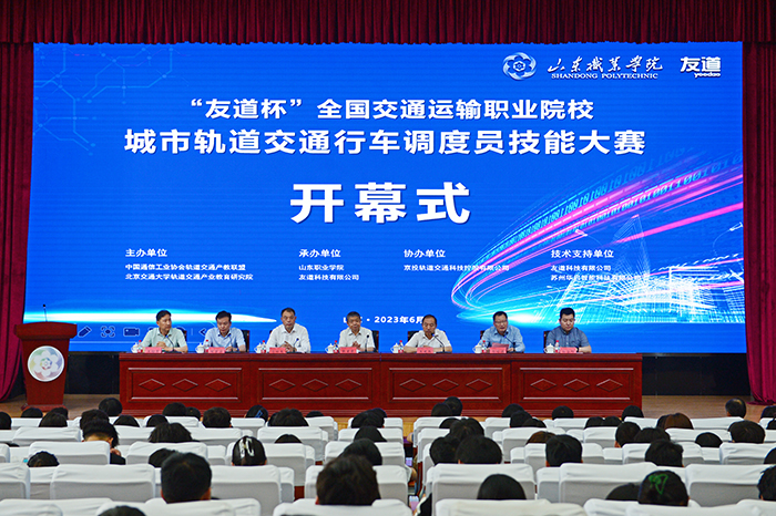 6月12日,由中国通信工业协会轨道交通产教联盟、北京交通大学轨道交通产业教育研究院主办,Beplay体育官方网站、友道科技有限公司承办的“友道杯”全国交通运输职业院校“城市轨道交通行车调度员”技能大赛在我校举行。教育部高等学校教指委交通运输类专业教指委主任、北京交通大学原副校长张星臣,山东省交通运输事业服务中心党委委员、总工程师王建兵,全国交通运输职业教育教学指导委员会副主任、北京交通运输职业学院原党委书记、院长马伯夷,全国交通运输职业教育教学指导委员会城市轨道交通类专业指导委员会委员谢小星,中国成人教育协会副会长、友道科技有限公司总裁田荣华,学校院长郭培谦、副院长王绍军等出席开幕式。
