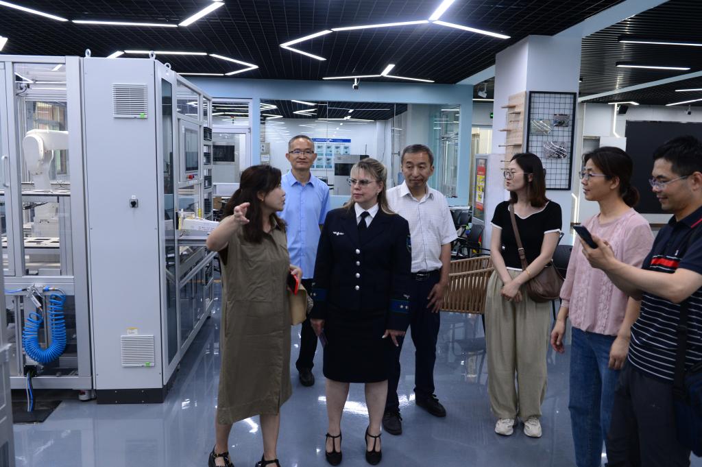 随后,安娜什金纳·纳塔利娅·尤里耶夫娜出席了教师座谈会和学生座谈会,实地参观了我校铁道机车车辆实习基地、城市轨道交通实训基地、全景教室、梧桐花开实验室、动车组机械师实训室、智能制造虚实融合公共实训基地。