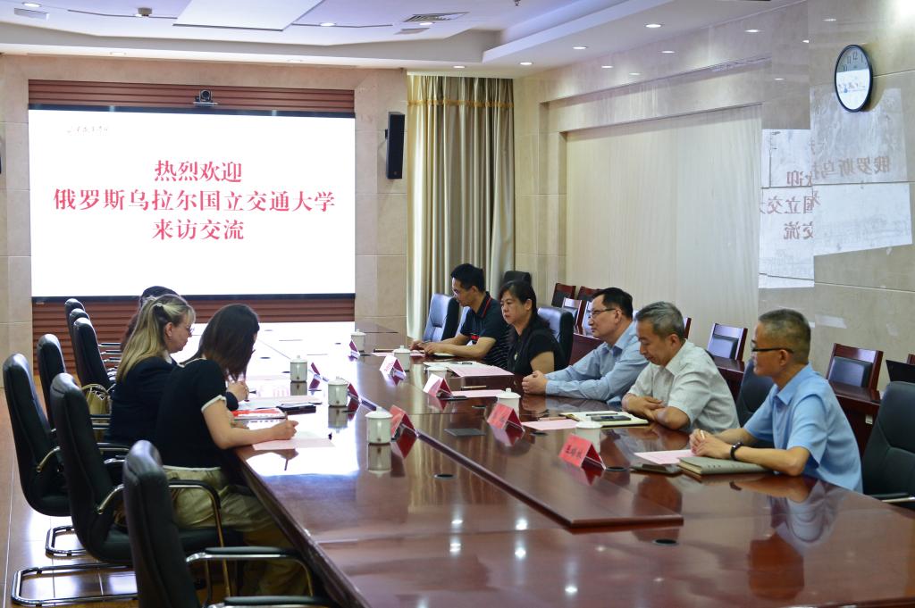 6月26日,俄罗斯乌拉尔国立交通大学副校长安娜什金纳·纳塔利娅·尤里耶夫娜来我校访问交流,院长郭培谦热情接待。