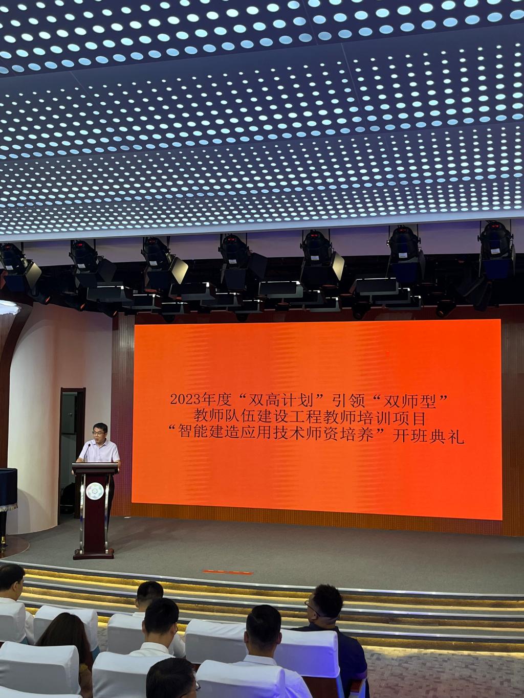 7月16日,2023年度“双高计划”引领“双师型”教师队伍建设工程教师培训项目“智能建造应用技术师资培养”开班典礼在我校举行,副院长王绍军出席并讲话,来自全省20所高职院校土建类专业的50余名骨干教师参加。典礼由土木工程学院院长郭兆军主持。