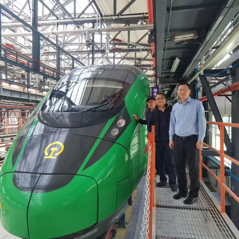 考察学习了格尔木机务段拉萨整备车间,见到了全路只配属三列的内电双源动力集中动车组。该动车组2021年开始运行,是为适应拉(萨)林(芝)铁路多隧道和高海拔的特点,由中车浦镇厂研制的。通过考察,在对机车车辆运行状况千差万别有了充分了解的基础上,也对我们的专业教学提出了要求,一方面需要对学生讲清楚这些差别,另一方面更需要通过专业拓展课等让有志于到这些区域工作的学生选修相关的课程。