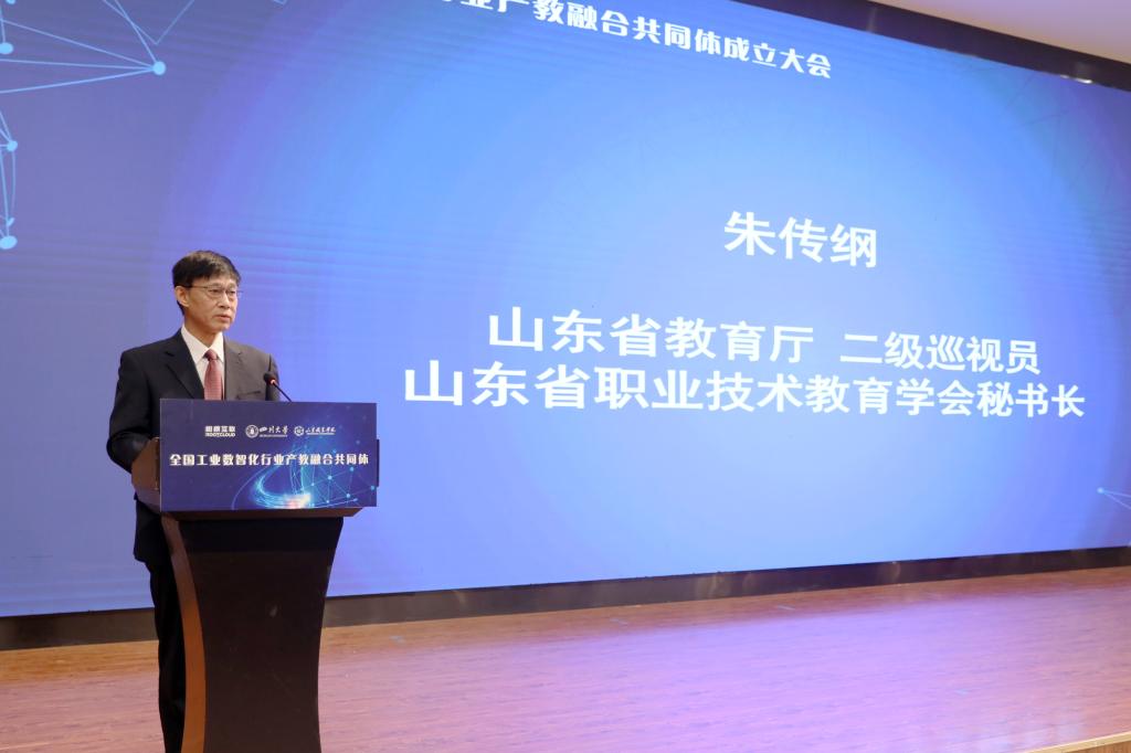 朱传纲在致辞中表示,共同体的成立是解决工业数智化行业技术技能人才短缺,助力提升工业产业链、供应链韧性和安全水平,加快推进新型工业化的重大创新举措。省教育厅会全力支持共同体的建设和发展,推动政行企校不断开创“四方联动”新局面,努力把共同体打造成服务工业数智化行业高质量发展的有力支撑。