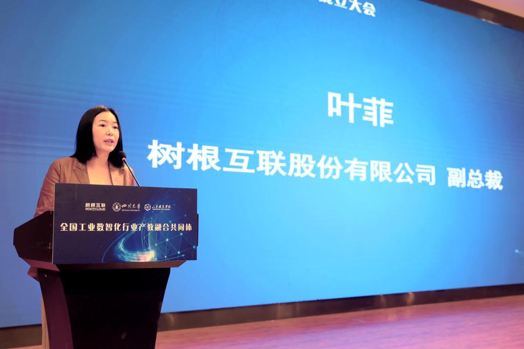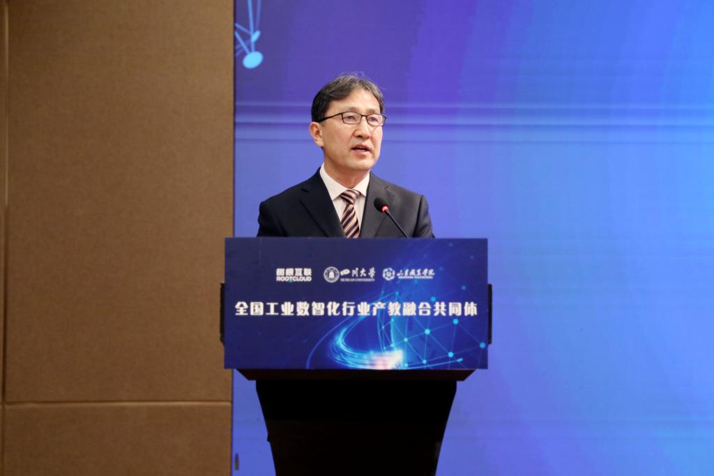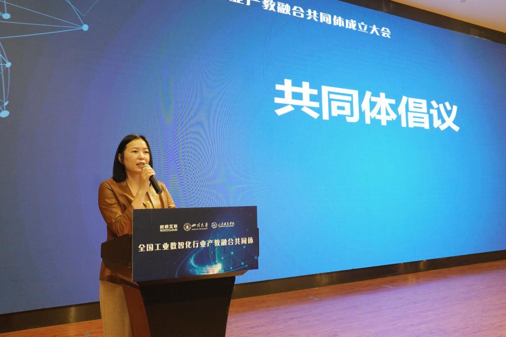 树根互联股份有限公司副总裁叶菲、四川大学工业互联网研究院常务副院长陈良银、我校党委书记赵凤文分别发言,并签署共建合作协议。出席嘉宾为共同体成立揭幕。