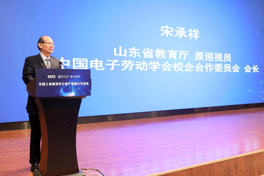 三一集团副总裁、人力资源总监向飞,山东省教育厅二级巡视员、山东省职业技术教育学会秘书长朱传纲,山东省教育厅原巡视员、中国电子劳动学会校企合作委员会会长宋承祥,机械工业教育发展中心主任助理王志强,工业和信息化部人才交流中心人才研究处负责人李利利到会致辞,中国职业技术教育学会常务副会长兼秘书长刘建同线上致辞。