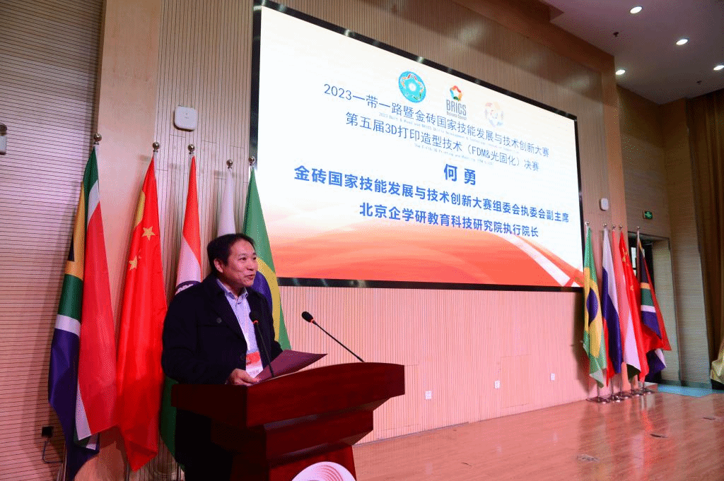 经过两天的激烈角逐,2023一带一路暨金砖国家技能发展与技术创新大赛第五届3D打印造型技术(FDM、光固化)决赛在我校圆满落下帷幕。12日上午,大赛闭幕式及颁奖仪式在图书行政楼东报告厅举行。北京企学研教育科技研究院执行院长何勇,我校院长郭培谦,赛项技术委员会主任、清华大学基础工业训练中心顾问、教授付宏生,赛项职业能力测评组长、辽宁省模具制造行业协会教育培训部主任赵世友,赛项专家组长、江苏电子信息职业学院刘永利教授,赛项副首席专家、安徽水利水电职业技术学院教研室主任张奎晓等出席闭幕式。来自38所职业院校的42支队伍共72名选手参加闭幕式。闭幕式由赛项组委会成员、北京企学研教育科技研究院鉴定合作处主任吴林主持。