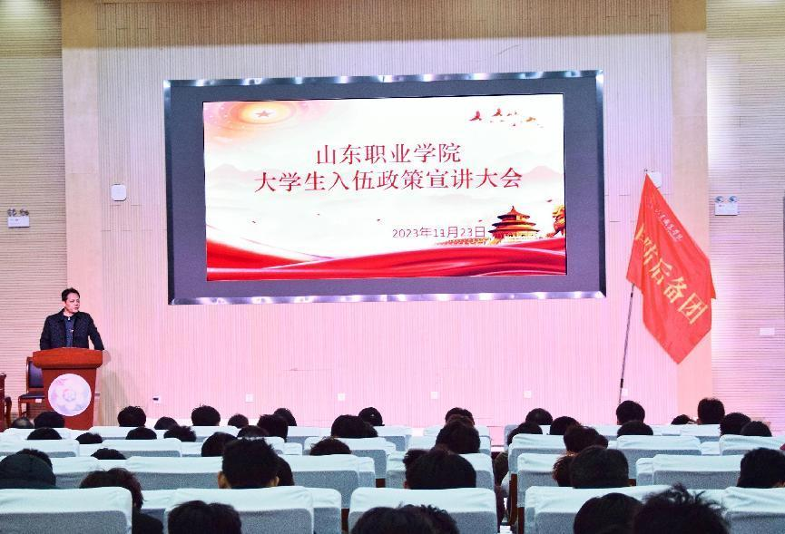 为鼓励大学生积极参军入伍,为军队输送更多高素质人才,11月23日下午,我校在图书行政楼东报告厅召开2024年春季征兵政策宣讲会,高新区社会事务部部长助理、人民武装和退役军人事务办公室主任翟福刚出席宣讲会。