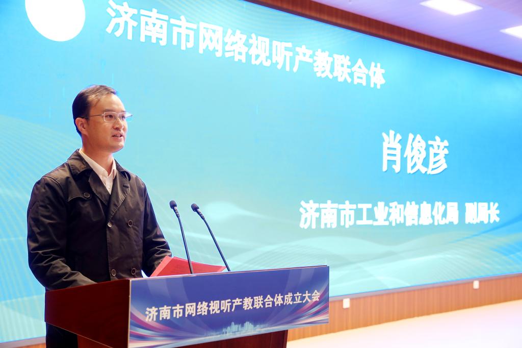 肖俊彦在致辞中表示,成立联合体,既是网络视听产业发展所需,更是行业企业所盼,必将为济南市网络视听产业的高质量发展发挥重要推动和引领作用。市工信局将在政策、资金、项目落地等方面给予大力支持,帮助联合体聚合政府、园区、企业、院校优质资源,促进联合体成员沟通交流。