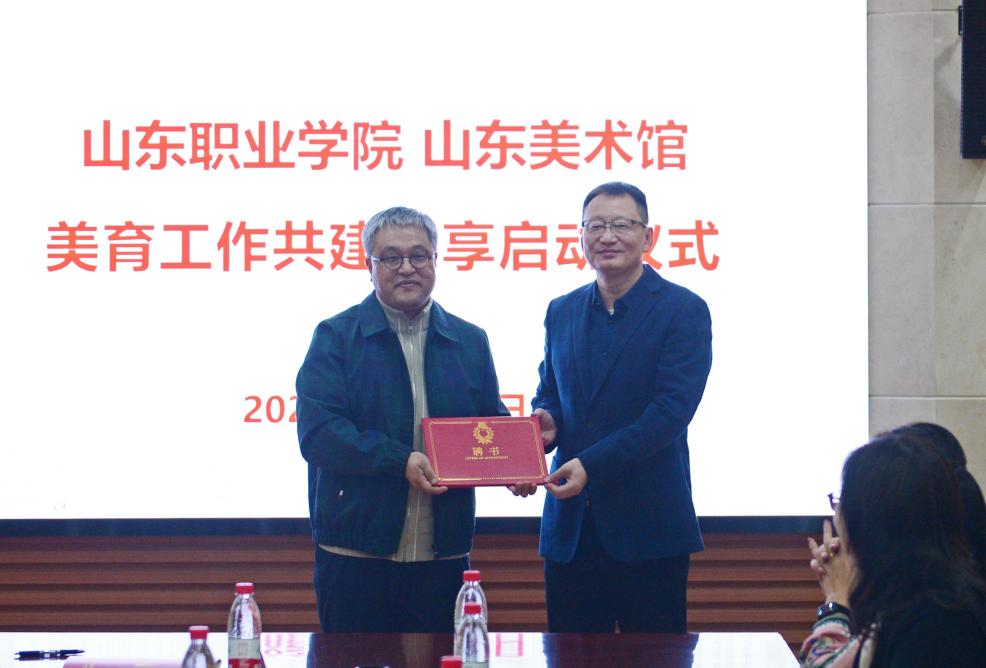 11月23日,我校与山东美术馆美育工作共建共享启动仪式在图书行政楼701会议室举行。院长郭培谦,山东美术馆党总支委员、副馆长姚允东出席仪式,郭培谦为姚允东颁发客座教授聘书。仪式由人文与基础课教学部党总支副书记周杰主持。