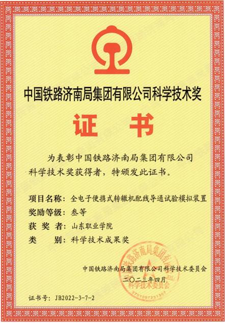我校获中国铁路济南局集团有限公司科学技术奖三等奖