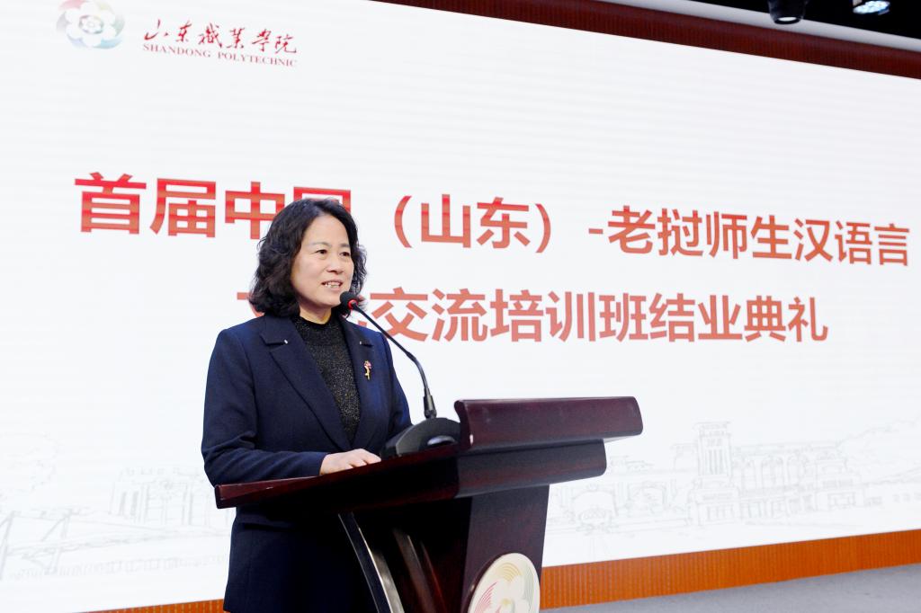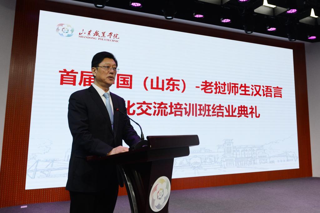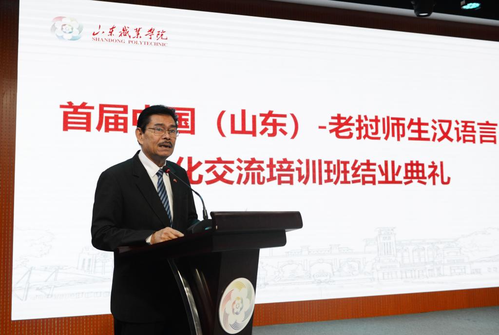 山东省教育厅(省委教育工委)国际交流与合作处处长王夫海,山东省委外办亚洲处副处长、三级调研员王绍兵,巴巴萨技术学院院长赛沙蒙·兰习、副院长杜安迪·西里邦,培训班全体学员、教师代表出席了结业典礼。