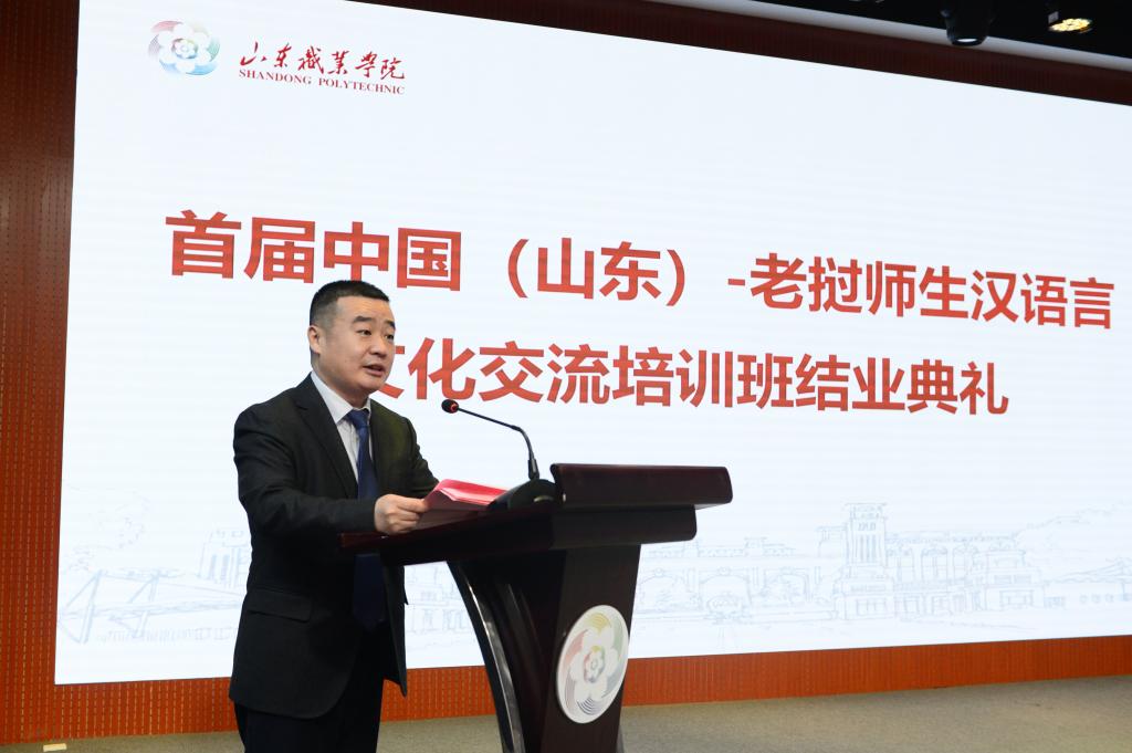 山东省委外办副主任、一级巡视员李永森,山东省教育厅(省委教育工委)总督学王志刚,老挝教育体育部高等职业教育司副司长赛康·潘塔翁,我校党委书记赵凤文出席典礼并致辞。院长郭培谦为学员们颁发结业证书。典礼由副院长郭鹏主持。