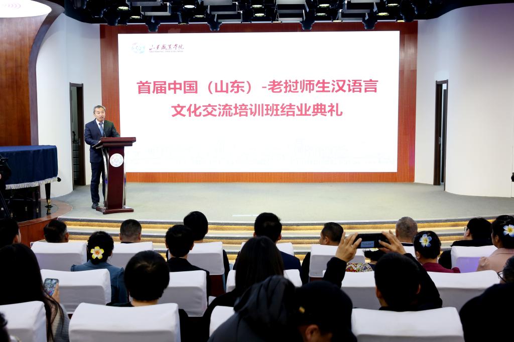 1月3日上午,我校首届中国(山东)-老挝师生汉语言文化交流培训班结业典礼在我校多功能音乐厅举行。