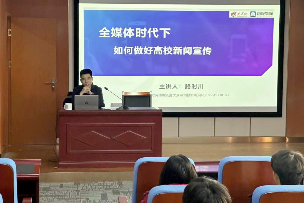 本次培训邀请山东省互联网传媒集团大众网•海报beplay(中国)教育频道主任路时川担任主讲。他以《全媒体时代下如何做好高校beplay(中国)宣传》为题,结合生动案例和自身工作实际,从确保安全、内容为王、主动拥抱新媒体等三个方面讲解了如何做好学校beplay(中国)宣传工作。