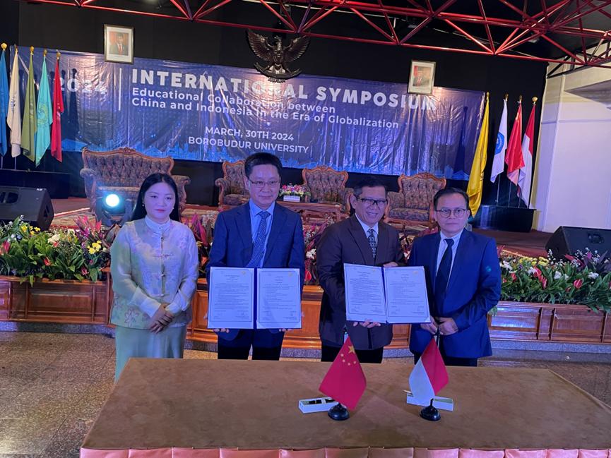 3月28日至31日,副院长李新华一行6人赴印度尼西亚参加中印国际教育研讨会,与印尼婆罗浮屠大学等签署了合作备忘录。