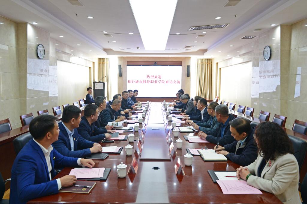4月2日,烟台城市科技职业学院党委书记车先礼,党委副书记、校长刘翠兰一行11人来我校考察交流。党委书记赵凤文、院长郭培谦热情接待。