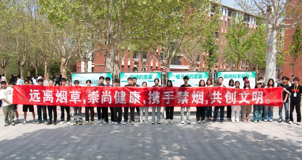为进一步倡导自律利他、安全绿色、共建共享的新时代美德健康方式,营造和谐文明的校园氛围,4月17日,我校在三角地广场举办校园控烟倡议活动。