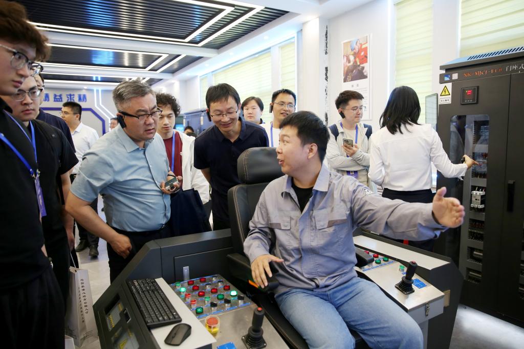 座谈会后,媒体记者实地参观了我校全景教室、智慧港口虚拟仿真实训中心、机场应急处置虚拟仿真实训中心、新一代信息技术学院实训室、音乐厅、智能制造虚实融合公共实训基地、梧桐花开实验室、动车组机械师实训室、高铁综合维修实训基地、城市轨道交通实训基地、三味书院、至谷餐厅等地,并与师生代表进行了深入交流、调研采访。
