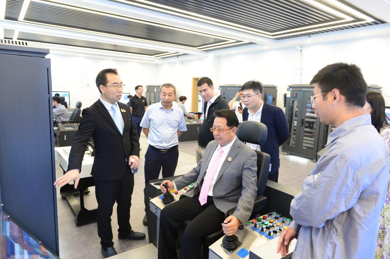 卡西迪特·阿查瓦昆一行还实地参观了我校城市轨道交通实训基地、梧桐花开实验室、全景教室、智慧港口虚拟仿真实训中心、机场应急处置虚拟仿真实训中心、智能制造虚实融合公共实训基地、动车组机械师实训室、高铁综合维修实训基地等。深入了解了学校实训基地建设及使用情况,通过实地参观、现场交流、驾乘体验等体验了中国职教课堂的魅力,对我校先进的实训设施、真实环境下的育人模式及学生饱满的学习状态给予了高度评价。