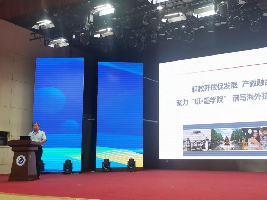 6月14日,职业教育海外“班·墨学院”建设工作交流活动在济宁举行。教育部职业教育发展中心主任林宇、山东省教育厅总督学王志刚、省外办、济宁市等领导出席会议并致辞。党委副书记郭鹏受邀参加并作为院校代表发言。