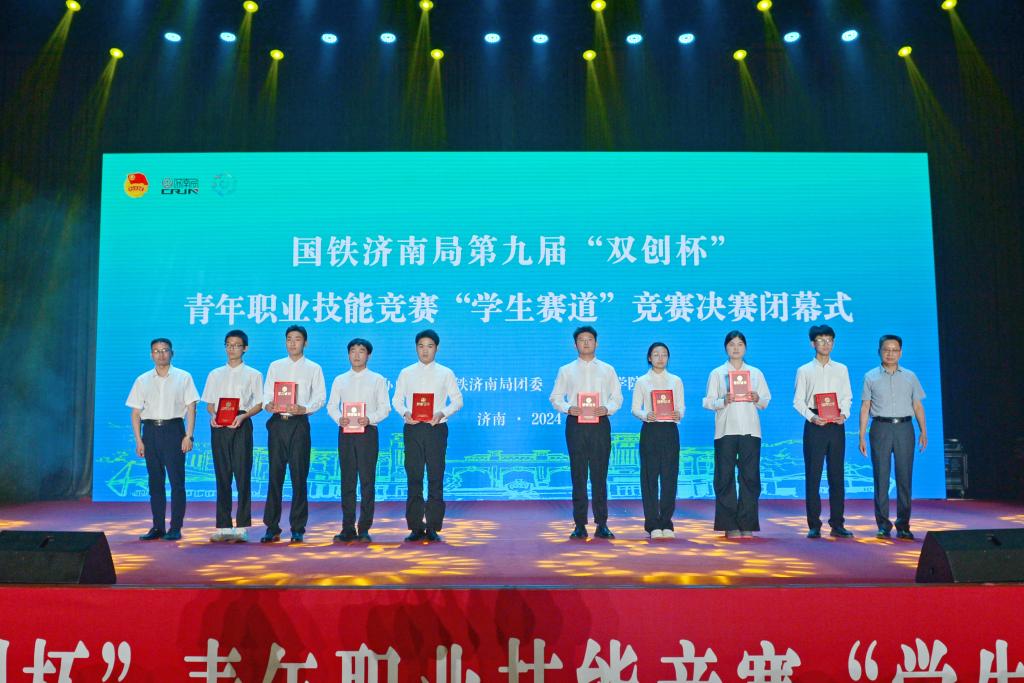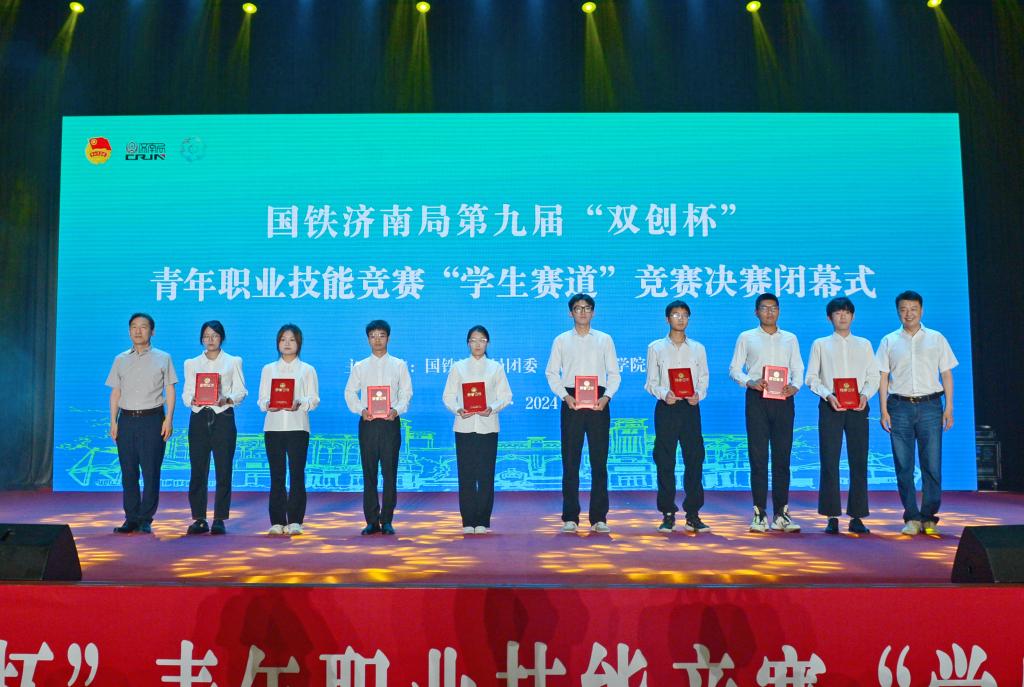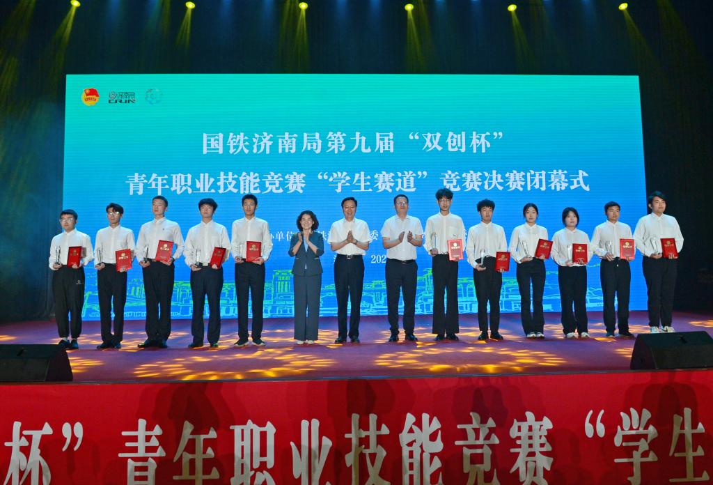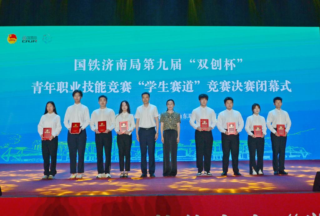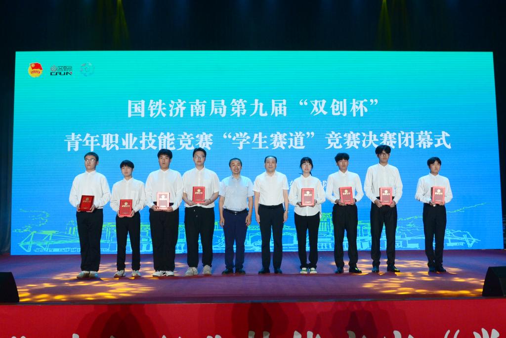6月27日上午,国铁济南局第九届“双创杯”青年职业技能竞赛“学生赛道”竞赛决赛闭幕式在我校南益馆举行。国铁济南局集团公司党委副书记薛义,Beplay体育官方网站党委书记赵凤文、院长郭培谦等校领导出席闭幕式,学校党委副书记郭鹏主持。