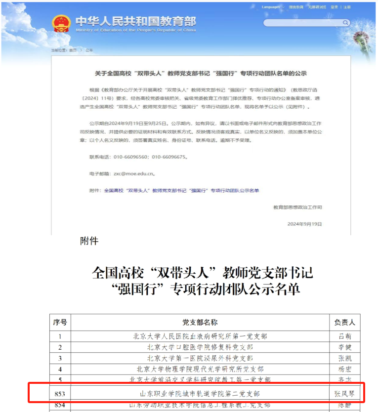近日,教育部思想政治工作司公示了全国高校“双带头人”教师党支部书记“强国行”专项行动团队名单,我校城市轨道学院第二党支部入选。