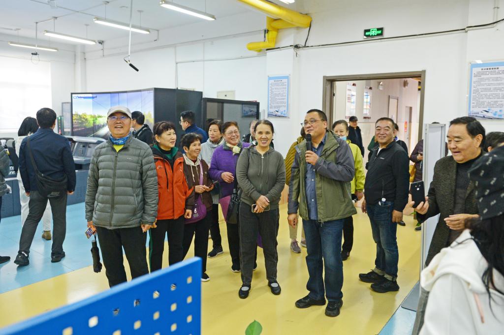 老教师们实地参观了城市轨道交通实训中心、智慧港口虚拟仿真实训中心、机场应急处置虚拟仿真实训中心、“梧桐花开”实训室、动车组机械师实训中心、智能制造虚实融合综合实训基地、天佑书院、至谷餐厅等。老同志们对现代化的教学设施、宽敞明亮的教室、功能齐全的专业实训中心以及舒适优美的学生生活环境赞叹不已。