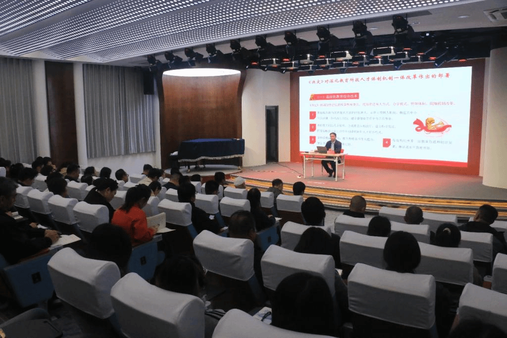 张少飞以《践行改革新使命,逐梦教育强国路》为题,领学了《中共中央关于进一步全面深化改革、推进中国式现代化的决定》精神,解读了《决定》中对深化教育科技人才体制机制一体改革作出的相关部署。他强调,全体党员师生要始终保持高度的政治自觉和行动自觉,以更加昂扬的斗志、更加务实的作风、更加创新的举措,推动教育事业不断向前发展。